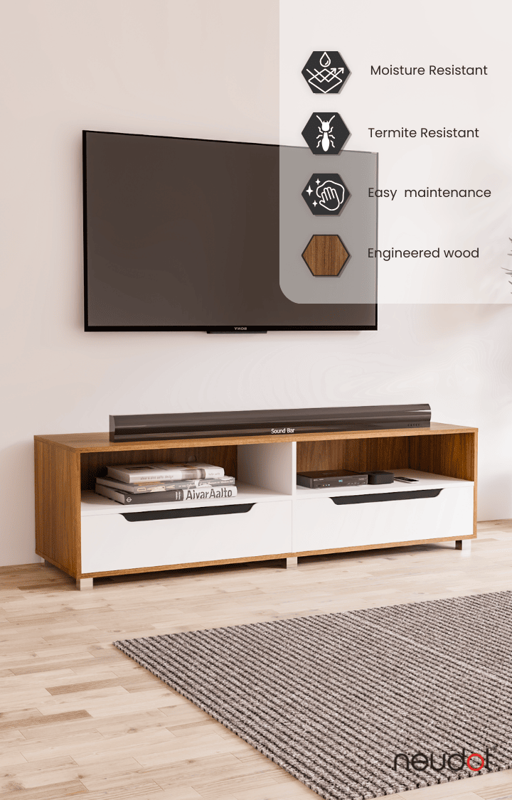 Home / Products / TV Units / Neudot Lifestyle Pvt Limited / Jerry TV Unit - Leon Teak & White